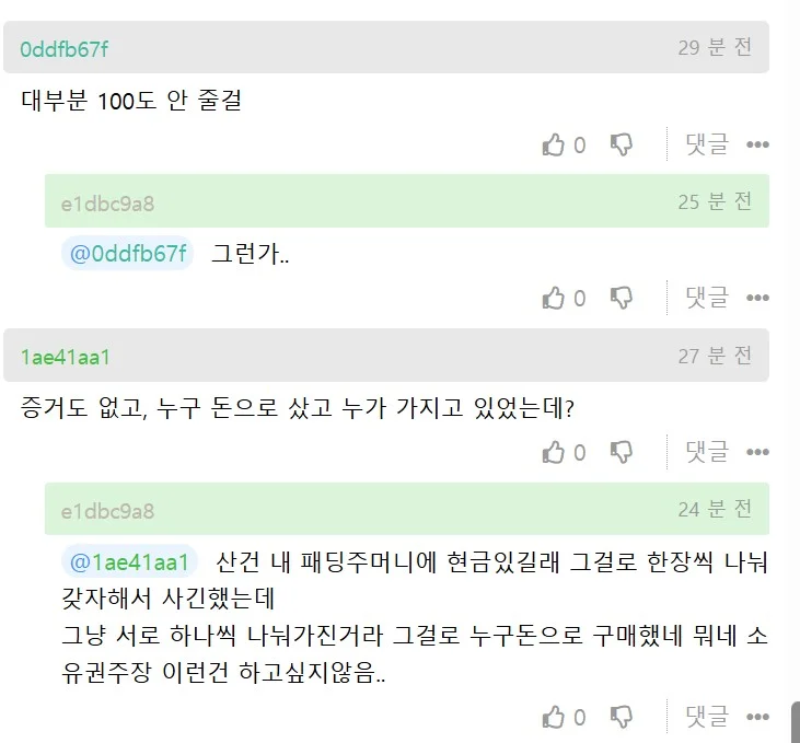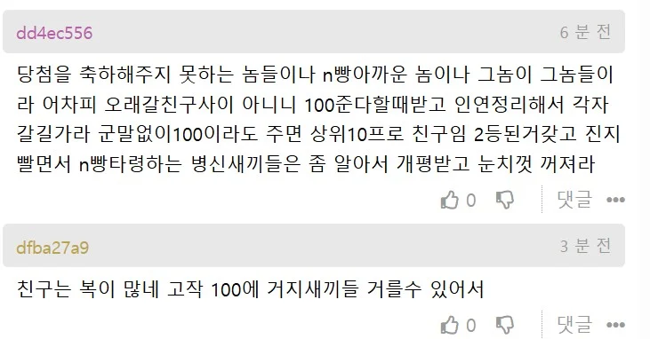 If you get 1 billion won, are you gonna split it equally? What nonsense, talking about loyalty and all that. Soon as someone offers to buy you a meal, you're running over celebrating like crazy. There are way too many fake losers here. I wish you guys would show your true colors already. I'm gonna quickly cut ties with you all. Later when you make good money and get rich, you'll be all bougie and keep demanding I pay for your meals lmao